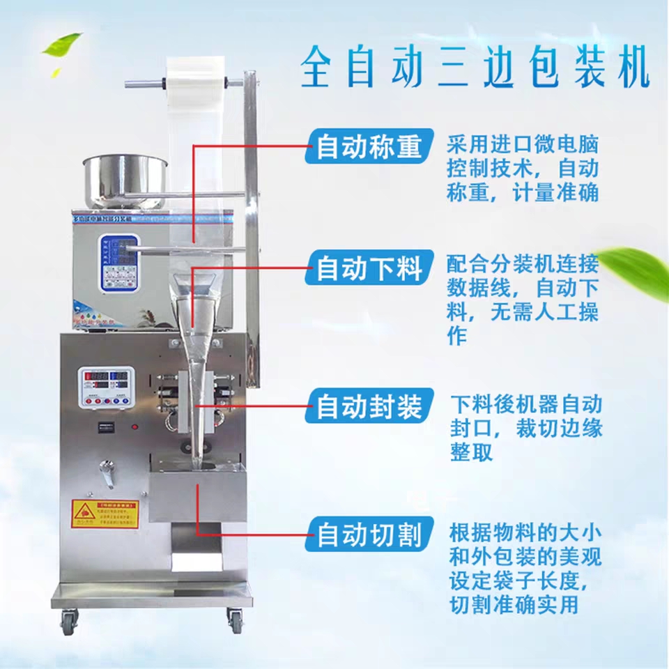 包裝機是結合了我司先進包裝技術,性能更穩定功能更強大,是集自動制袋裝袋封口于一體的新型電子機械產品,讓用戶真正感受科技創新的魅力。包裝機適用于食品、醫藥、化工產品中的松散、無粘性、顆粒狀物料的自動包裝,如:花生、瓜子、麥片、碎干食面、沖劑、干燥劑、味精、白糖、食鹽、洗衣粉等。